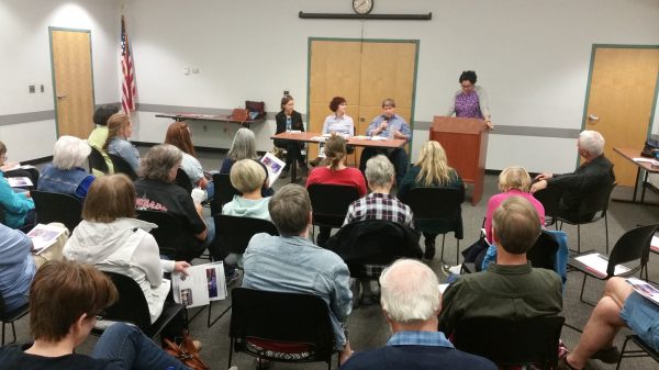 Reneé Bibby (at podium), director of the Tucson branch of Writers Studio, was the moderator, and I was one of the panelists, along with Lilian Vercauteren (left side of table) and Donna Aversa (center). It was really fun to be part of the discussion and talk about examples from our own work to illustrate how we had made certain technical choices to sustain a viable narrator and evoke effective mood.