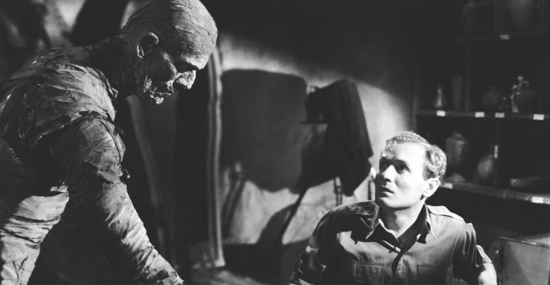 • Universal produced a series of sequels, discarding the mood and poetry and the Ardath Bey character, opting for straight forward scares with a full-fledged bandaged and mute mummy (renamed Kharis) stalking victims throughout. Despite these changes, THE MUMMY’s flashback sequence to ancient Egypt would be extensively reused in the sequels.