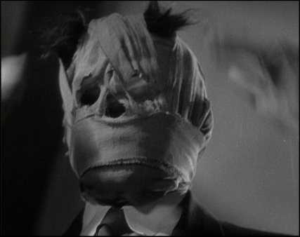 At the beginning of the film, Griffin has secreted himself away in a country inn, hoping to reverse his invisibility so he can return to Flora. Wrapped in bandages, prone to temperamental fits, he brings disaster upon himself by throwing the innkeeper down a flight of stairs.