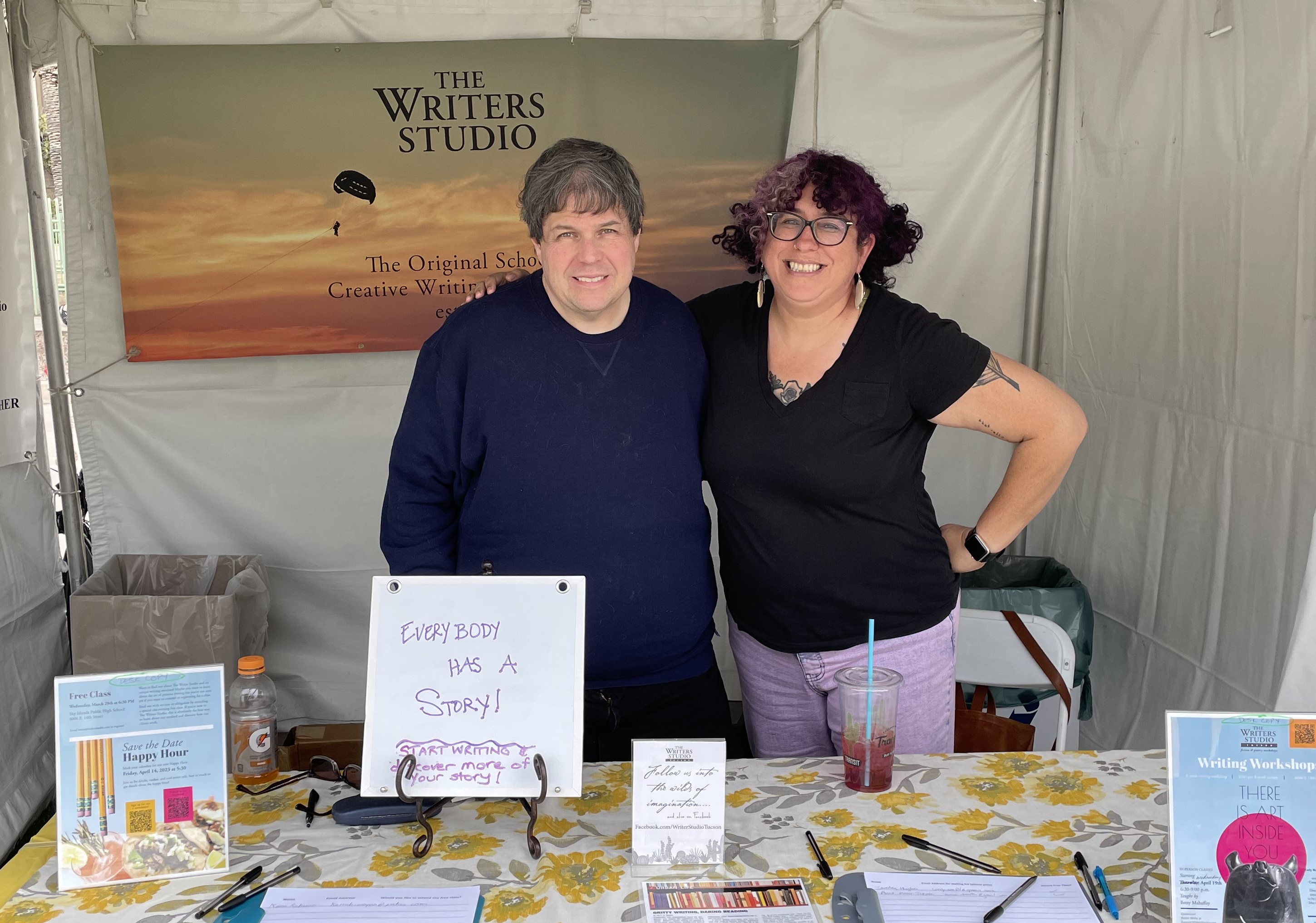 EVERYBODY HAS A STORY: Outgoing director, Reneé Bibby on right, with new director, Phil Ivory, on left at 2023 Tucson Festival of Books.